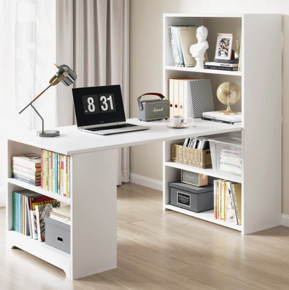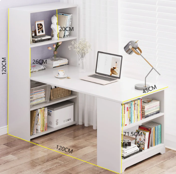 Прекрасно дизајнирана, ја комбинира компјутерската маса со единица со четири полици и единица со две полици како комплетен интегриран систем, создавајќи продуктивен работен простор со дополнителен простор за складирање и изложување за сите ваши канцелариски потреби и многу простор за маса за вашиот компјутер и додатоци. Овој стилски дизајн на интегрирана работна станица не е само иновативен и заштедува простор, туку додава и допир на стил и елеганција во вашата домашна канцеларија. Користете го вашиот простор ефикасно, со удобност и стил.