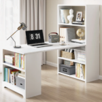 Компјутерската маса Varossa со полици е одличен начин да ја поставите вашата домашна канцеларија или студија. Со својот паметен, елегантен и поедноставен дизајн, ќе имате доволно простор за складирање книги, папки, документи, стерео систем и друго. Оваа уникатна и елегантна работна станица содржи 6 пространи полици, стилски и модерни, а сепак толку едноставни.