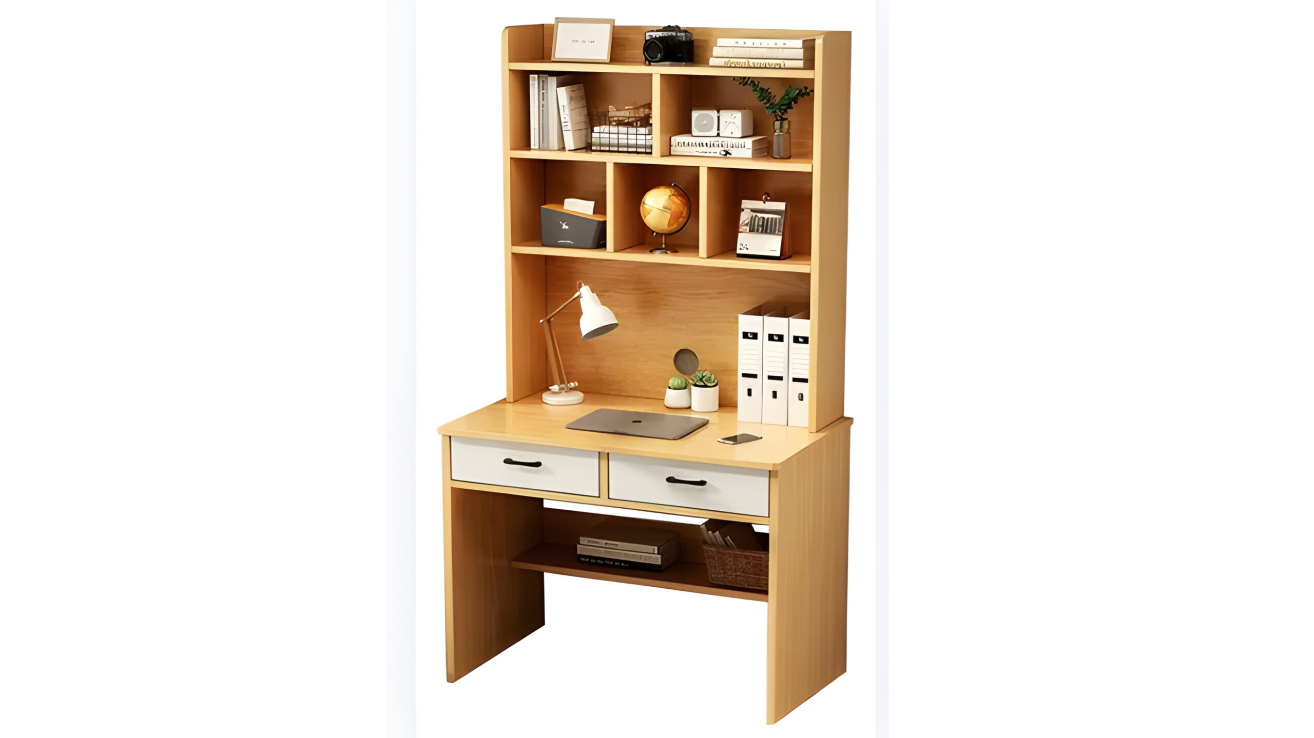 2-во-1 компјутерска маса: Дизајнирана со полици за складирање на површината на масата, компјутерската маса има комбинација од маса за пишување и полица за книги. Претставува вертикален дизајн што заштедува простор за да ги складирате вашите книги, компјутери итн., на дофат.